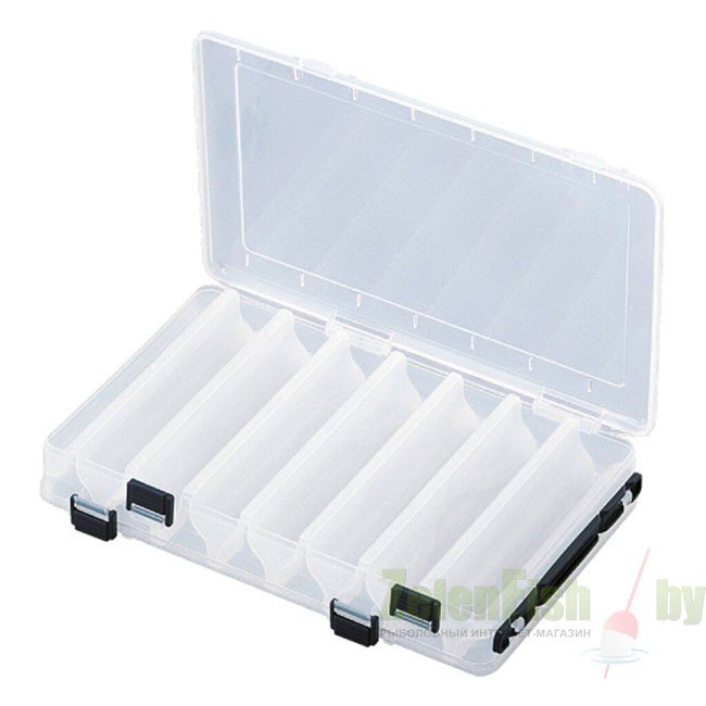 Эта модель – пример максимального умения минимизировать пространство. Коробка двусторонняя, то есть ее можно открыть либо с одной, либо с другой стороны. Вид пластика, использованного для этой модели – специальный. Во-первых, он особо прочный, потому что изначально эта коробка используются для хранения приманок, которые в Японии используются при морской ловле, а отрицательное влияние морской воды хорошо известно. Во-вторых, свойства этого пластика таковы, что он гарантирует, что Ваши самые ценные воблеры, «лежа» в «лунках», не будут повреждены. Прорези позволяют пропускать влагу, что способствует «проветриванию» приманок, даже если Вы сложили их в коробки влажными.