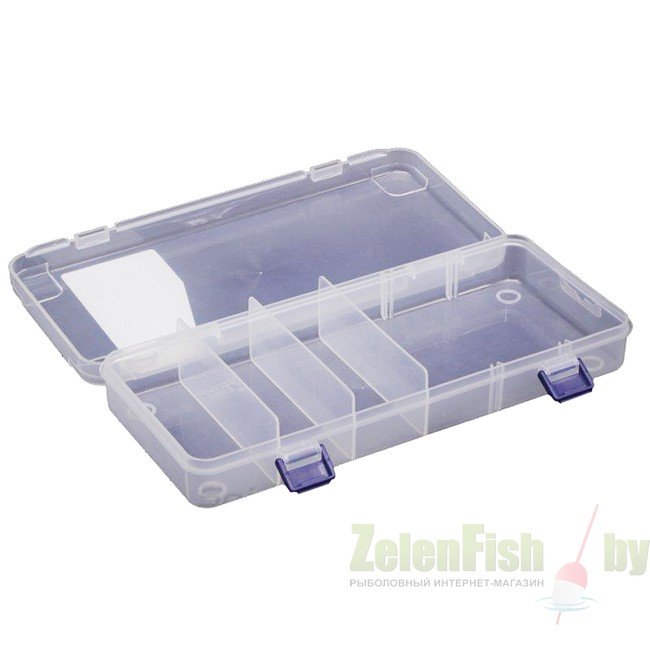 Пластиковая рыболовная коробка для хранения аксессуаров, приманок и оснасток. Имеет 3 фиксированные перегородки и 2 съемные, оснащена надежной защелкой, утопленной в корпус. Специальный "козырек" защитит петли от ударов и механических повреждений. Крышка определенной формы для защиты от деформации. Три отделения габаритами 11х4,2х4 см. Одно отделение габаритами 13,1х11х4 см.