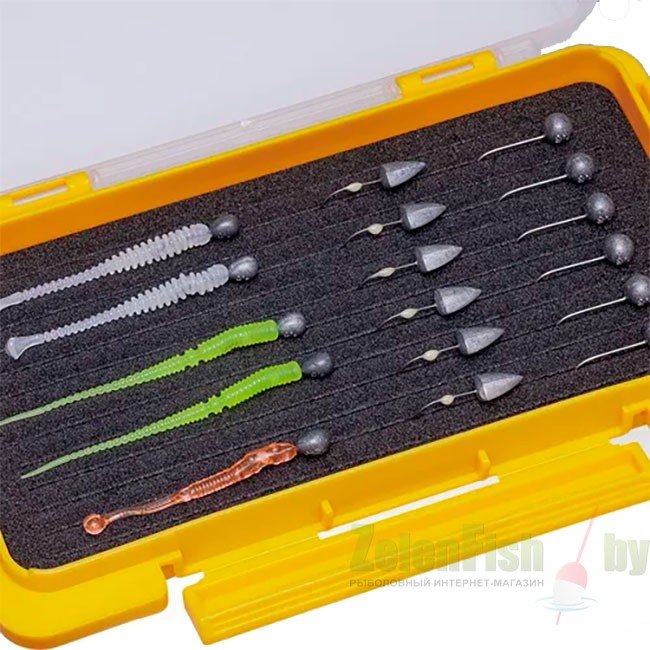 - Коробка с пористым вкладышем с прорезями для фиксации крючков приманок.