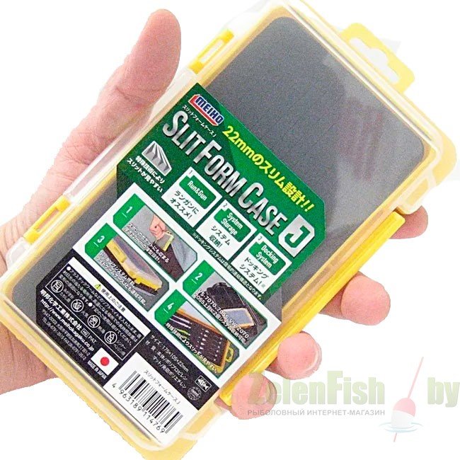 Slit Form Case J от японской компании Meiho – супер тонкая коробка. Ее толщина составляет всего лишь 22 миллиметра. Отлично подойдет под хранение различных ультралайтовых приманок или миниатюрных джиг-головок. Отлично сочетается с форелевыми ящиками Versus и без проблем помещается в верхней отсек под крышкой. Как и вся продукция Meiho данная модель сделана из прочного надежного пластика, пригодным для хранения силиконовых приманок. Крышка из полупрозрачного пластика, что помогает сразу определить содержимое. Габариты внутренней пенки для крепления приманок 15,8×8,1 см.
