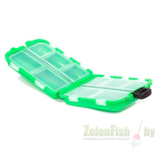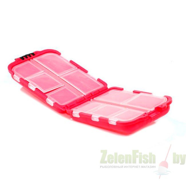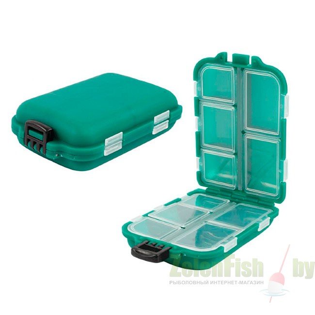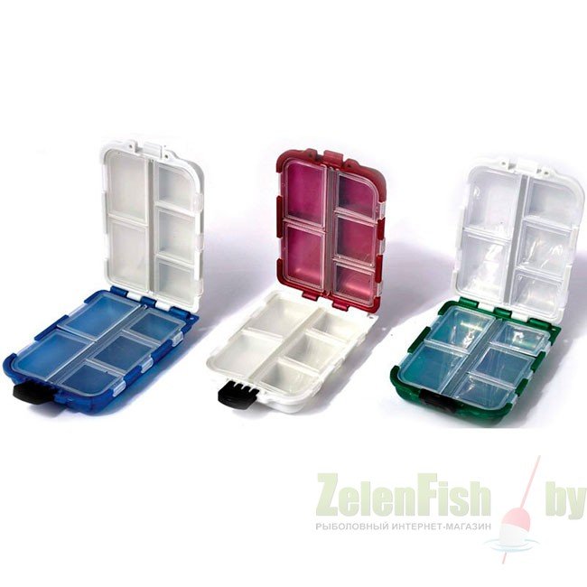Цвет зависит от поставки и может отличаться от фотографии. Коробочка двухсторонняя многосекционная для рыболовных мелочей. 4 отделения габаритами: 4 х 2,5 х 1 см; 2 отделения габаритами: 3 х 2,5 х 1 см; 4 отделения габаритами: 2,5 х 2,5 х 1 см.