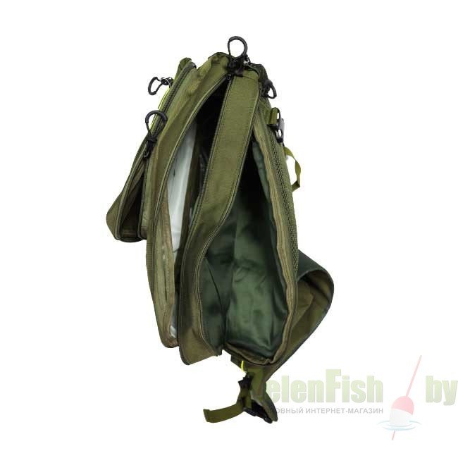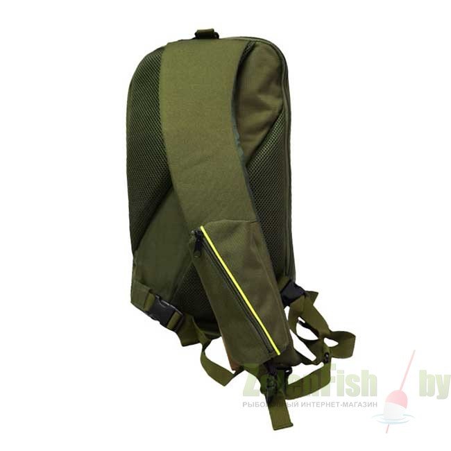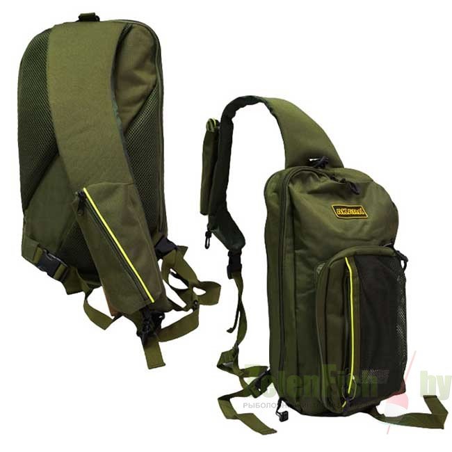 Предназначен для рыбалки, охоты, активного отдыха или повседневной носки. Имеет два основных отсека на замках, количество наружных карманов на замках – 2. Имеется дополнительный съемный карман на лямке сумки, также карман – сеточка на резинке на основании сумки. Спинка сумки имеет анатомические мягкие, дышащие вставки. Рюкзак имеет косую шлейку с дополнительным поясным креплением.