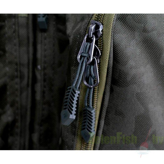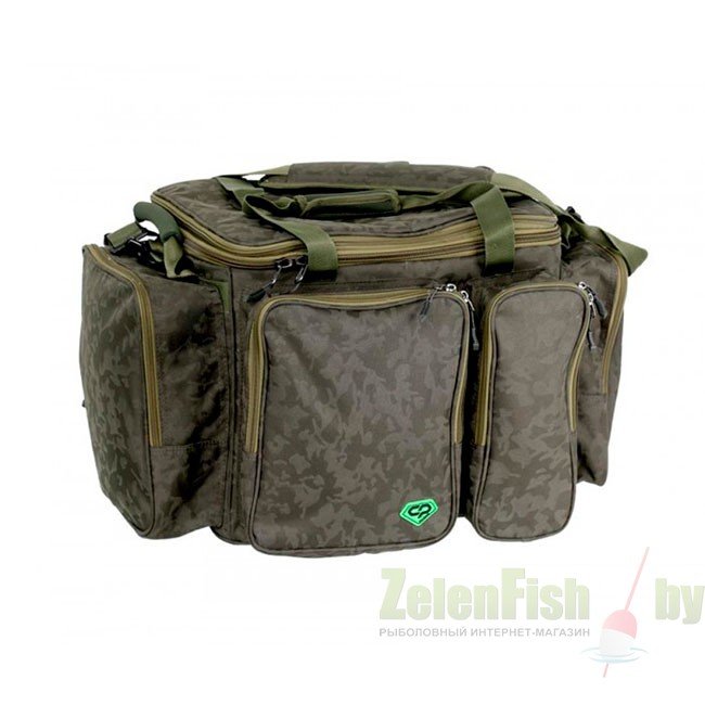 Большая и вместительная карповая сумка со столиком в комплекте. Сумка выполнена из прочного полиэстера и оснащена двумя фронтальными и двумя боковыми карманами на молниях. Замки молний оборудованы прорезиненными «ухватками». Столик имеет тканевое основание с упругим наполнителем. Такое решение позволяет установить стол горизонтально даже на неровной поверхности. Размер столика — 42x31x6 см. Достаточно высокий бортик по периметру стола не позволит скатиться и упасть вещам или рыболовным аксессуарам на землю. Кроме того, столик можно закрепить непосредственно на сумке сверху — для этого предусмотрены две Fastex защелки. Для удобства транспортировки предусмотрены две ручки с неопреновой накладкой и регулируемый наплечный ремень с эргономичной вставкой.
