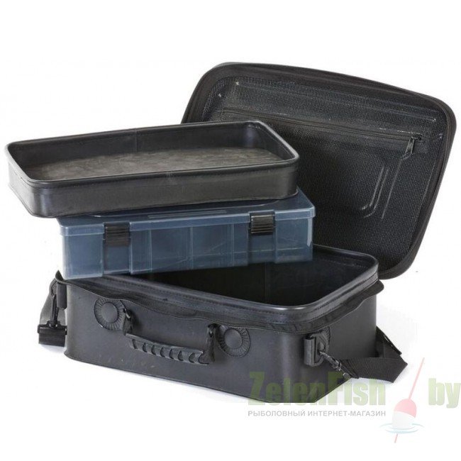 Сумка для спиннинговой рыбалки, изготовленная из EVA материала. Укомплектована пластиковой коробкой для хранения приманок и оснасток, а также лотком из EVA со вставкой из пенки для "сброса" приманок в процессе рыбалки. Легко моется, не впитывает посторонние запахи, не пропускает воду.