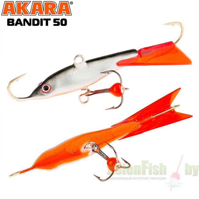 Балансир Akara Bandit 50 - разработан для зимней рыбалки, является популярной и эффективной приманкой для ловли окуня. Балансир изготовлен из качественных, морозостойких материалов и оснащен высокопрочными крючками и тройниками японской компании Maruto. Длинна балансира 50 миллиметров, вес – 10 грамм. Балансиры этой модели красятся в уловистые цвета, причем окрашивание осуществляется с применением флуоресцентных UV красок (светятся в ультрафиолетовом диапазоне), либо с использованием люминесцентных фосфорных красок (светятся в темноте). Существуют также варианты двухсторонней окраски. Балансир имеет акцентированную, стабильную и предсказуемую игру, легко отзывается на анимацию и прекрасно подойдет не только опытным любителям зимней рыбалки, но и начинающим рыболовам.