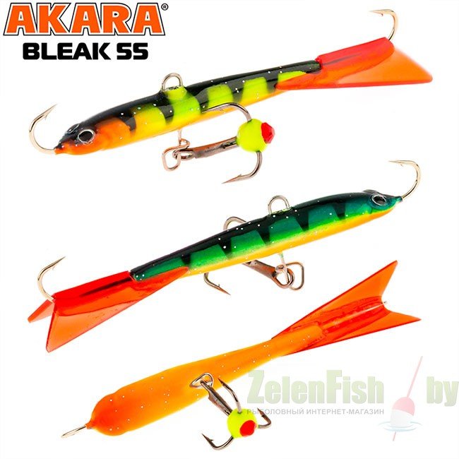 Балансир Akara Bleak 55 разработан для зимней ловли хищных рыб, таких как судак и окунь. Балансир изготовлен из качественных, морозостойких материалов и оснащен высокопрочными крючками и тройниками японской компании Maruto. Длина балансира 55 миллиметров, вес - 8 грамм. Балансиры этой модели красятся в уловистые цвета, причем окрашивание осуществляется с применением UV красок (светятся в ультрафиолетовом диапазоне), либо с использованием фосфорных красок (светятся в темноте). Балансир имеет стабильную, высокоамплитудную, повторяющуюся игру, которая обеспечит эффективную рыбалку.