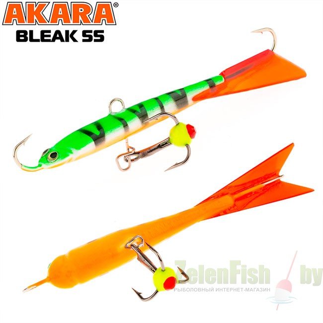 Балансир Akara Bleak 55 разработан для зимней ловли хищных рыб, таких как судак и окунь. Балансир изготовлен из качественных, морозостойких материалов и оснащен высокопрочными крючками и тройниками японской компании Maruto. Длина балансира 55 миллиметров, вес - 8 грамм. Балансиры этой модели красятся в уловистые цвета, причем окрашивание осуществляется с применением UV красок (светятся в ультрафиолетовом диапазоне), либо с использованием фосфорных красок (светятся в темноте). Балансир имеет стабильную, высокоамплитудную, повторяющуюся игру, которая обеспечит эффективную рыбалку.