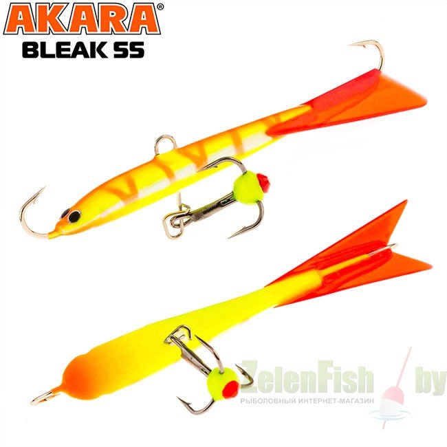 Балансир Akara Bleak 55 разработан для зимней ловли хищных рыб, таких как судак и окунь. Балансир изготовлен из качественных, морозостойких материалов и оснащен высокопрочными крючками и тройниками японской компании Maruto. Длина балансира 55 миллиметров, вес - 8 грамм. Балансиры этой модели красятся в уловистые цвета, причем окрашивание осуществляется с применением UV красок (светятся в ультрафиолетовом диапазоне), либо с использованием фосфорных красок (светятся в темноте). Балансир имеет стабильную, высокоамплитудную, повторяющуюся игру, которая обеспечит эффективную рыбалку.