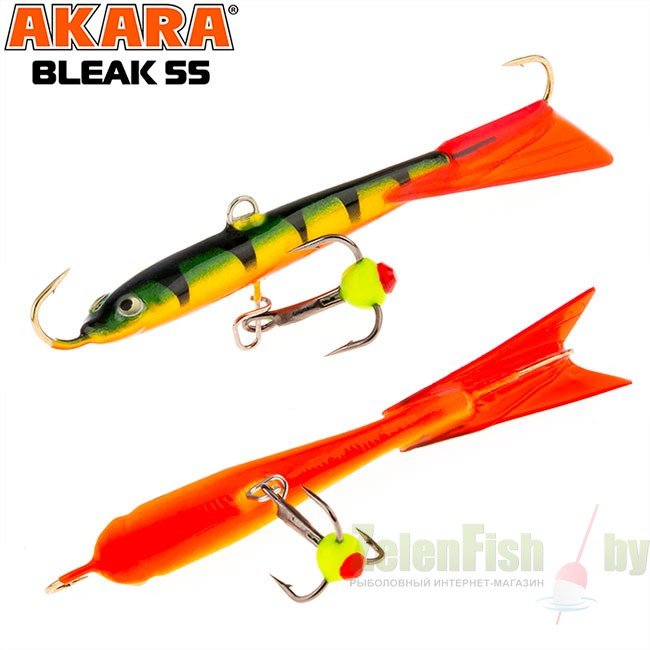 Балансир Akara Bleak 55 разработан для зимней ловли хищных рыб, таких как судак и окунь. Балансир изготовлен из качественных, морозостойких материалов и оснащен высокопрочными крючками и тройниками японской компании Maruto. Длина балансира 55 миллиметров, вес - 8 грамм. Балансиры этой модели красятся в уловистые цвета, причем окрашивание осуществляется с применением UV красок (светятся в ультрафиолетовом диапазоне), либо с использованием фосфорных красок (светятся в темноте). Балансир имеет стабильную, высокоамплитудную, повторяющуюся игру, которая обеспечит эффективную рыбалку.
