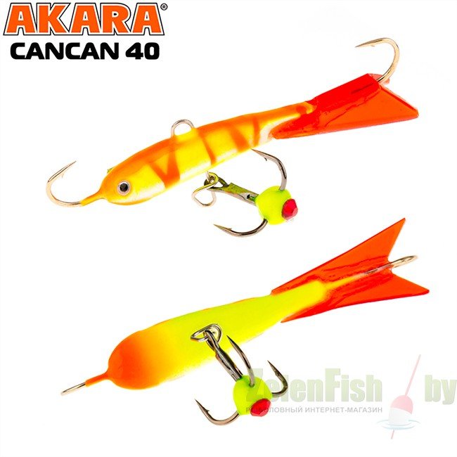 Балансир Akara Cancan 40 разработан для зимней ловли хищных рыб, таких как судак и окунь. Балансир изготовлен из качественных, морозостойких материалов и оснащен высокопрочными крючками и тройниками японской компании Maruto. Длина балансира 40 миллиметров, вес - 6 грамм. Балансиры этой модели красятся в уловистые цвета, причем окрашивание осуществляется с применением UV красок (светятся в ультрафиолетовом диапазоне), либо с использованием фосфорных красок (светятся в темноте). Балансир имеет стабильную, высокоамплитудную, повторяющуюся игру, которая обеспечит эффективную рыбалку.