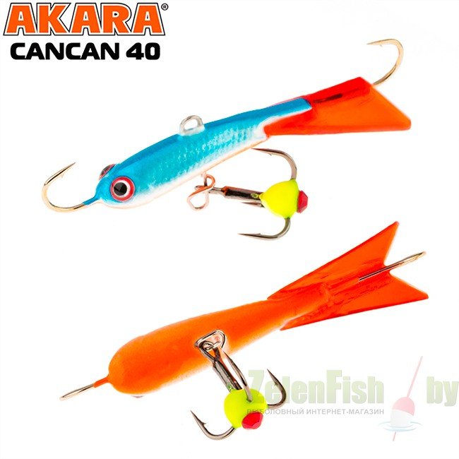 Балансир Akara Cancan 40 разработан для зимней ловли хищных рыб, таких как судак и окунь. Балансир изготовлен из качественных, морозостойких материалов и оснащен высокопрочными крючками и тройниками японской компании Maruto. Длина балансира 40 миллиметров, вес - 6 грамм. Балансиры этой модели красятся в уловистые цвета, причем окрашивание осуществляется с применением UV красок (светятся в ультрафиолетовом диапазоне), либо с использованием фосфорных красок (светятся в темноте). Балансир имеет стабильную, высокоамплитудную, повторяющуюся игру, которая обеспечит эффективную рыбалку.