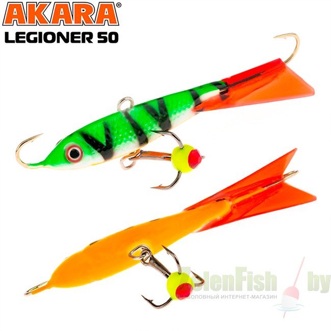 Балансир Akara Legioner 50 разработан для зимней ловли хищных рыб, таких как окунь и судак. Балансир изготовлен из качественных, морозостойких материалов и оснащен высокопрочными крючками и тройниками японской компании Maruto. Длина балансира 50 миллиметров, вес - 9 грамм. Балансиры этой модели красятся в уловистые цвета, причем окрашивание осуществляется с применением флуоресцентных UV красок (светятся в ультрафиолетовом диапазоне), либо с использованием люминесцентных фосфорных красок (светятся в темноте). Балансир прекрасно отзывается на анимацию и имеет яркую, высокоамплитудную игру, которая может спровоцировать на поклевку даже пассивного хищника. Станет прекрасным пополнением арсенала любителей зимней рыбалки.