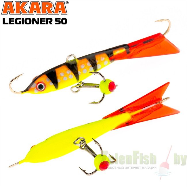 Балансир Akara Legioner 50 разработан для зимней ловли хищных рыб, таких как окунь и судак. Балансир изготовлен из качественных, морозостойких материалов и оснащен высокопрочными крючками и тройниками японской компании Maruto. Длина балансира 50 миллиметров, вес - 9 грамм. Балансиры этой модели красятся в уловистые цвета, причем окрашивание осуществляется с применением флуоресцентных UV красок (светятся в ультрафиолетовом диапазоне), либо с использованием люминесцентных фосфорных красок (светятся в темноте). Балансир прекрасно отзывается на анимацию и имеет яркую, высокоамплитудную игру, которая может спровоцировать на поклевку даже пассивного хищника. Станет прекрасным пополнением арсенала любителей зимней рыбалки.