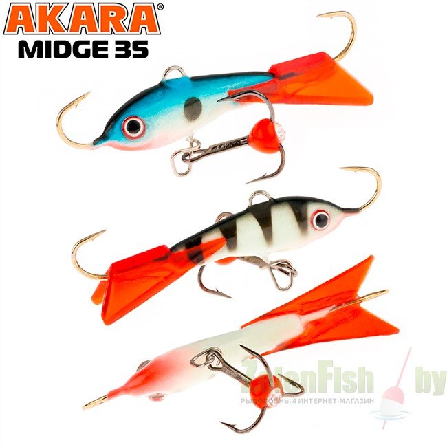 Балансир Akara Midge 35 разработан для зимней ловли хищных рыб, таких как окунь и судак. Балансир изготовлен из качественных, морозостойких материалов и оснащен высокопрочными крючками и тройниками японской компании Maruto. Длина балансира 35 миллиметров, вес - 4 грамм. Балансиры этой модели красятся в уловистые цвета, причем окрашивание осуществляется с применением флуоресцентных UV красок (светятся в ультрафиолетовом диапазоне), либо с использованием люминесцентных фосфорных красок (светятся в темноте). Балансир прекрасно отзывается на анимацию и имеет яркую, высокоамплитудную игру, которая может спровоцировать на поклевку даже пассивного хищника. Балансир Akara Midge станет прекрасным пополнением арсенала любителей зимней рыбалки.