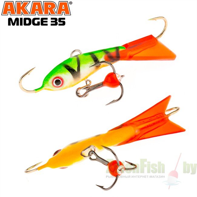 Балансир Akara Midge 35 разработан для зимней ловли хищных рыб, таких как окунь и судак. Балансир изготовлен из качественных, морозостойких материалов и оснащен высокопрочными крючками и тройниками японской компании Maruto. Длина балансира 35 миллиметров, вес - 4 грамм. Балансиры этой модели красятся в уловистые цвета, причем окрашивание осуществляется с применением флуоресцентных UV красок (светятся в ультрафиолетовом диапазоне), либо с использованием люминесцентных фосфорных красок (светятся в темноте). Балансир прекрасно отзывается на анимацию и имеет яркую, высокоамплитудную игру, которая может спровоцировать на поклевку даже пассивного хищника. Балансир Akara Midge станет прекрасным пополнением арсенала любителей зимней рыбалки.