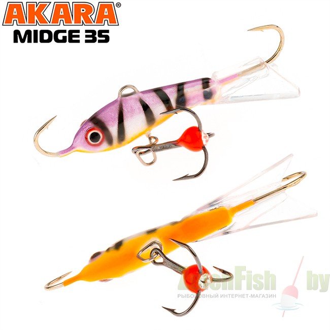 Балансир Akara Midge 35 разработан для зимней ловли хищных рыб, таких как окунь и судак. Балансир изготовлен из качественных, морозостойких материалов и оснащен высокопрочными крючками и тройниками японской компании Maruto. Длина балансира 35 миллиметров, вес - 4 грамм. Балансиры этой модели красятся в уловистые цвета, причем окрашивание осуществляется с применением флуоресцентных UV красок (светятся в ультрафиолетовом диапазоне), либо с использованием люминесцентных фосфорных красок (светятся в темноте). Балансир прекрасно отзывается на анимацию и имеет яркую, высокоамплитудную игру, которая может спровоцировать на поклевку даже пассивного хищника. Балансир Akara Midge станет прекрасным пополнением арсенала любителей зимней рыбалки.