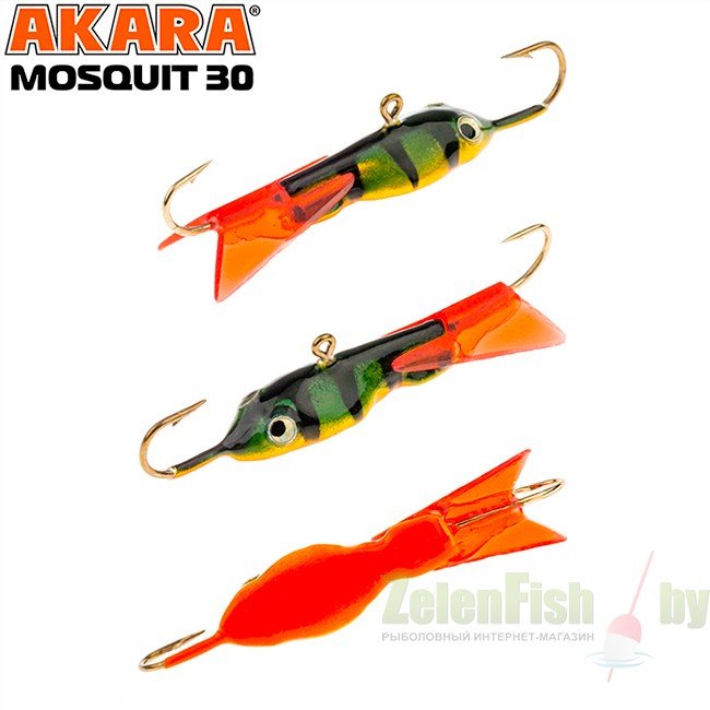 Балансир Akara Mosquit 30 разработан для зимней ловли хищных рыб, таких как окунь и судак. Балансир изготовлен из качественных, морозостойких материалов и оснащен высокопрочными крючками и тройниками японской компании Maruto. Длинна балансира 30 миллиметров, вес 2,5 грамм. Балансиры этой модели красятся в уловистые цвета, причем окрашивание осуществляется с применением флуоресцентных UV красок (светятся в ультрафиолетовом диапазоне), либо с использованием люминесцентных фосфорных красок (светятся в темноте). Балансир прекрасно отзывается на анимацию и имеет яркую, высокоамплитудную игру, которая может спровоцировать на поклевку даже пассивного хищника. Балансир Akara Mosquit 30 станет прекрасным пополнением арсенала любителей зимней рыбалки.