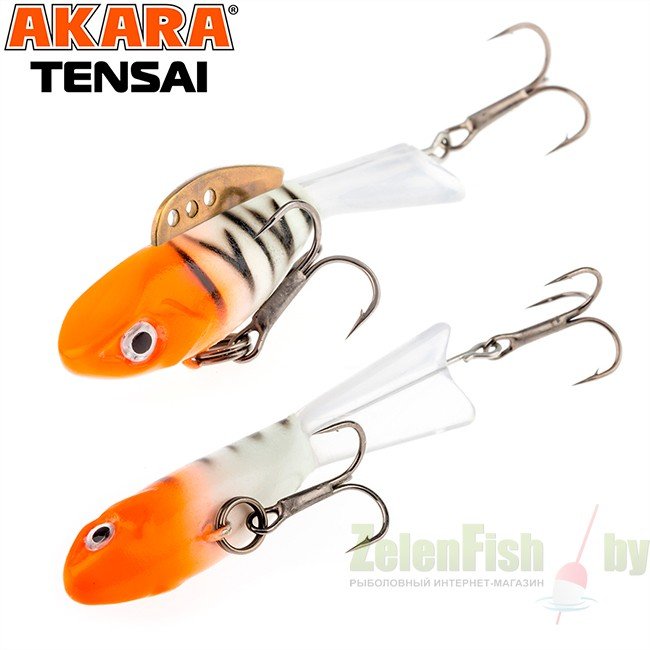 Балансир для отвесной ловли. Данный балансир, пластиковый со свинцовым сердечником, разработан для ловли в отвес, как зимой, так и летом. Балансиры Акара Тенсай изготовлены из качественных морозостойких материалов и выпускаются в длине 57 и 67 мм, оснащены высокопрочными крючками и тройниками японской компании Maruto. Все приманки красятся в уловистые цвета, специальными финскими красками. Особенностью данных балансиров является возможность выбора варианта игры в воде. Это достигается за счет трех способов крепления на латунном верхнем плавнике балансира.