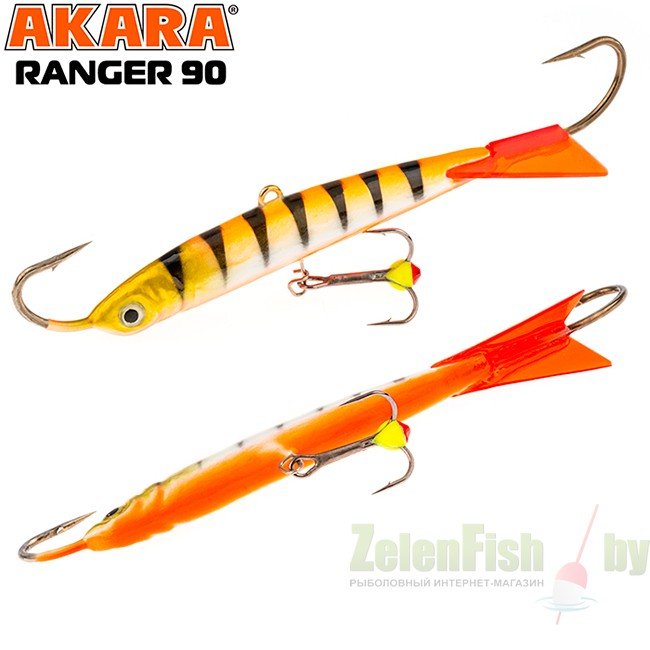 Разработан для зимней ловли хищных рыб, таких как окунь и судак. Балансир изготовлен из качественных, морозостойких материалов и оснащен высокопрочными крючками и тройниками японской компании Maruto. Длинна балансира 90 миллиметров, вес 36 грамм. Балансиры этой модели красятся в уловистые цвета, причем окрашивание осуществляется с применением флуоресцентных UV красок (светятся в ультрафиолетовом диапазоне), либо с использованием люминесцентных фосфорных красок (светятся в темноте). Приманка прекрасно отзывается на анимацию и имеет яркую, высокоамплитудную игру, которая может спровоцировать на поклевку даже пассивного хищника. Балансир Akara Ranger 90 станет прекрасным пополнением арсенала любителей зимней рыбалки.