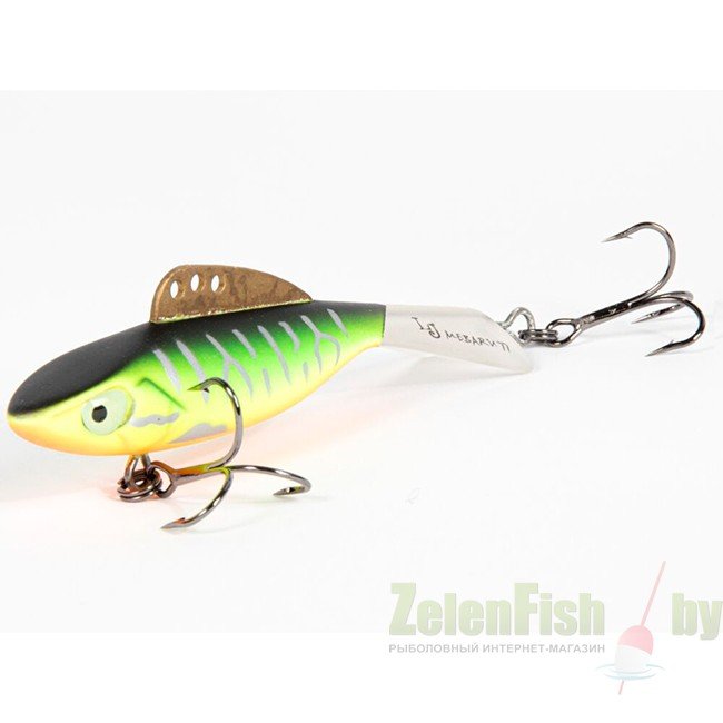 Mebaru – балансир, разработанный в Японии, для ловли хищной рыбы со льда и в отвес с дрейфующей лодки. Приманка изготовлена из свинцового сплава с корпусом и хвостом, сформированными из цельного морозостойкого и ударопрочного пластика ABS. Длинный хвост обеспечивает четкие развороты приманки в крайних точках траектории движения. В спинном плавнике, изготовленном из латуни, имеется три отверстия. В зависимости от точки крепления, игра приманки изменяется.