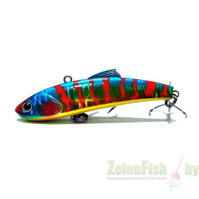 Спиннинговая приманка типа VIB/Rattlin. Приманки подобного типа давно пользуются большим успехом у рыболовов, кто предпочитает ловить крупного донного хищника на больших глубинах, например, судака, щуку или крупного донного окуня. Разнообразная UV-цветовая палитра, включая как натуралистичные окрасы, так и яркие «кислотные» оттенки, быстрое включение в работу, уверенная игра, а какие траектории они выписывают, хищник просто не силах устоять и атакует приманку. Narval Frost Candy Vib очень актуален не только по открытой воде при ловле в заброс и в вертикальном джиггинге, но и зимой из-подо льда. На вооружении приманки стоит пара острых прочных тройников.