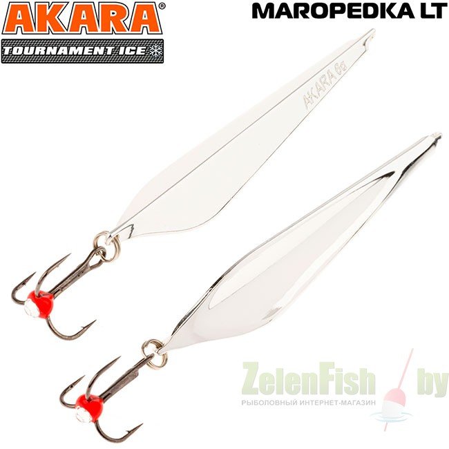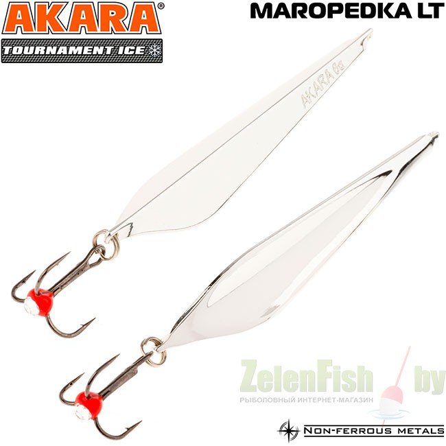Зимняя блесна Akara «Маропедка» - одна из самых универсальных зимних блесен. Это изобретение Александра Воробьева, мастера спорта международного класса. С помощью этой приманки он не один раз выигрывал чемпионаты по зимней блесне. Название блесны происходит от трех известных зимних блесен.