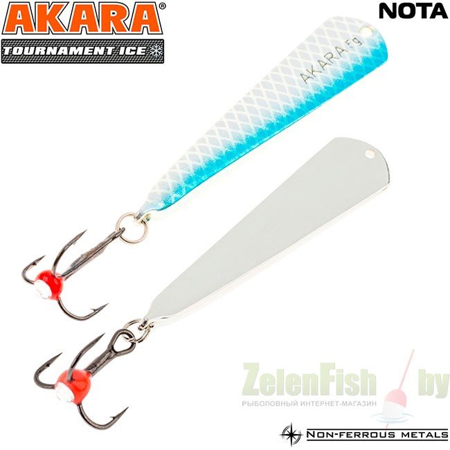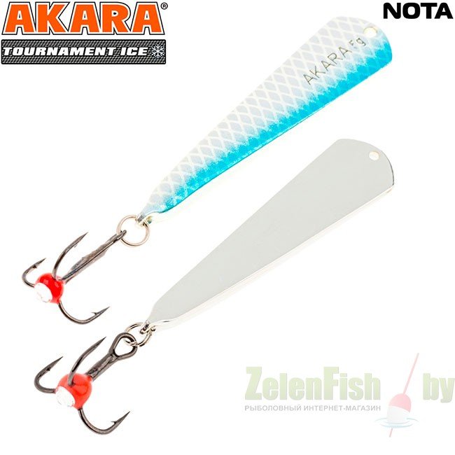Блесна зимняя Akara Tournament Ice Nota выпускается в двух размерах 35 и 45 мм и в основном рассчитана на ловлю окуня. Отличается гвоздящей игрой и отлично работает по активной рыбе. При широких взмахах имеет отклонение в сторону, что так же привлекает рыбу.