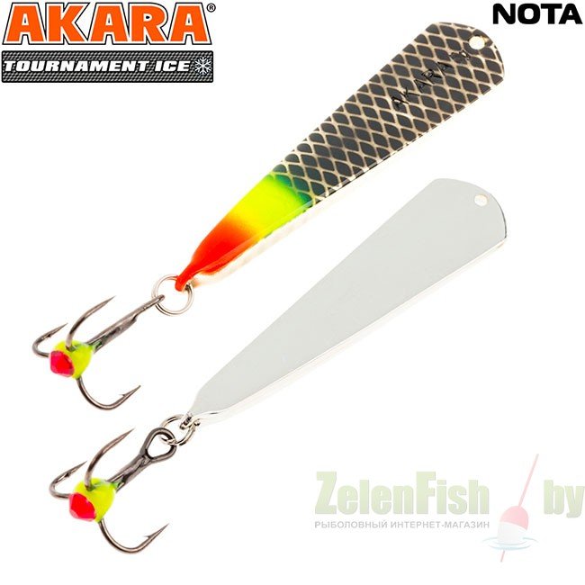 Блесна зимняя Akara Tournament Ice Nota выпускается в двух размерах 35 и 45 мм и в основном рассчитана на ловлю окуня. Отличается гвоздящей игрой и отлично работает по активной рыбе. При широких взмахах имеет отклонение в сторону, что так же привлекает рыбу.