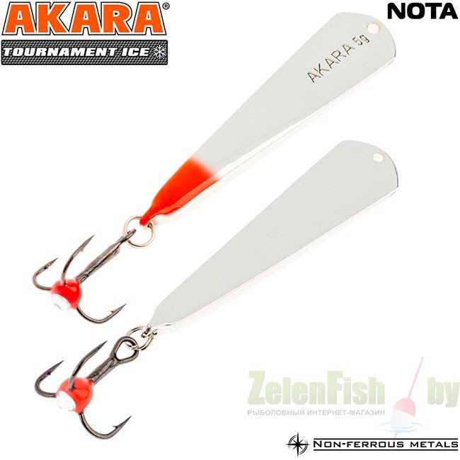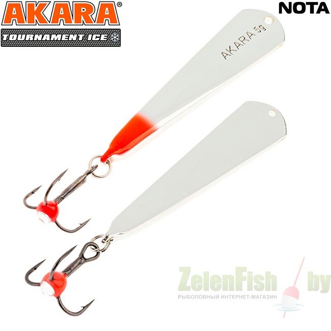Блесна зимняя Akara Tournament Ice Nota выпускается в двух размерах 35 и 45 мм и в основном рассчитана на ловлю окуня. Отличается гвоздящей игрой и отлично работает по активной рыбе. При широких взмахах имеет отклонение в сторону, что так же привлекает рыбу.