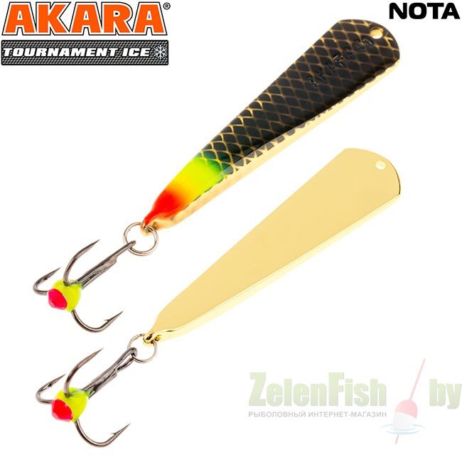 Блесна зимняя Akara Tournament Ice Nota выпускается в двух размерах 35 и 45 мм и в основном рассчитана на ловлю окуня. Отличается гвоздящей игрой и отлично работает по активной рыбе. При широких взмахах имеет отклонение в сторону, что так же привлекает рыбу.