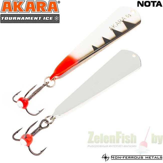 Блесна зимняя Akara Tournament Ice Nota выпускается в двух размерах 35 и 45 мм и в основном рассчитана на ловлю окуня. Отличается гвоздящей игрой и отлично работает по активной рыбе. При широких взмахах имеет отклонение в сторону, что так же привлекает рыбу.