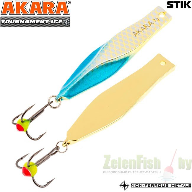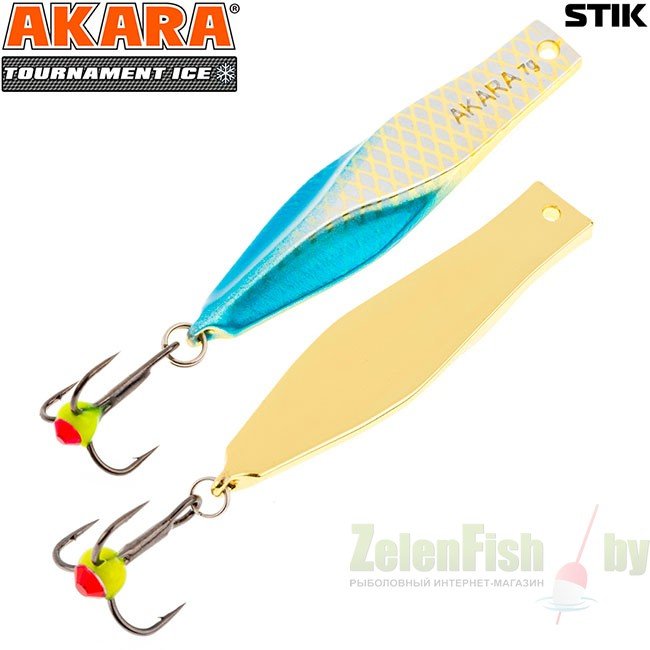 Блесна зимняя Akara Tournament Ice Stik выпускаются в четырех размерах 50, 60, 70 и 80 мм. Блесна предназначена для ловли любой хищной рыбы и в зависимости от размера может использоваться при практически любых глубинах и условиях ловли. Имеет горизонтальную, осыпающуюся игру, с четким отыгрышем в конце.