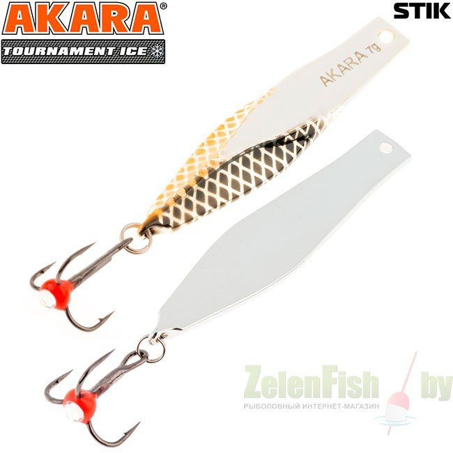 Блесна зимняя Akara Tournament Ice Stik выпускаются в четырех размерах 50, 60, 70 и 80 мм. Блесна предназначена для ловли любой хищной рыбы и в зависимости от размера может использоваться при практически любых глубинах и условиях ловли. Имеет горизонтальную, осыпающуюся игру, с четким отыгрышем в конце.