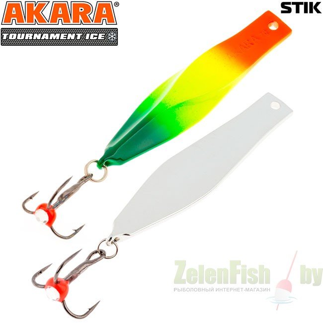 Блесна зимняя Akara Tournament Ice Stik выпускаются в четырех размерах 50, 60, 70 и 80 мм. Блесна предназначена для ловли любой хищной рыбы и в зависимости от размера может использоваться при практически любых глубинах и условиях ловли. Имеет горизонтальную, осыпающуюся игру, с четким отыгрышем в конце.