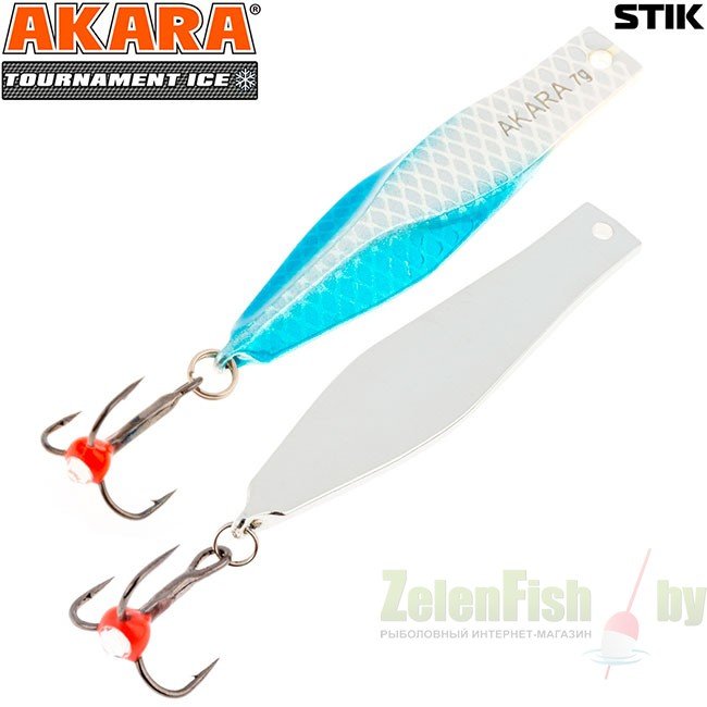 Блесна зимняя Akara Tournament Ice Stik выпускаются в четырех размерах 50, 60, 70 и 80 мм. Блесна предназначена для ловли любой хищной рыбы и в зависимости от размера может использоваться при практически любых глубинах и условиях ловли. Имеет горизонтальную, осыпающуюся игру, с четким отыгрышем в конце.