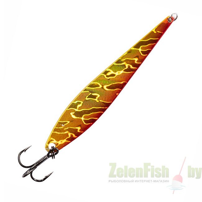 Крупная блесна для ловли на больших глубинах и на реках с течением. Объект ловли: окуни-горбачи, щука и судак. Форма блесны позволяет ей хорошо планировать и привлекать находящуюся с ней рядом рыбу. Неширокая форма тела делает эту приманку универсальной блесной для ловли как щуки, так и судака.