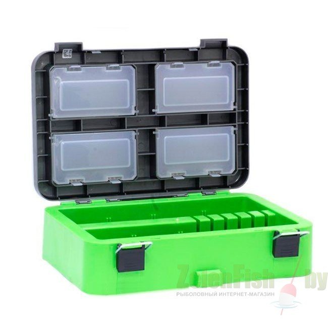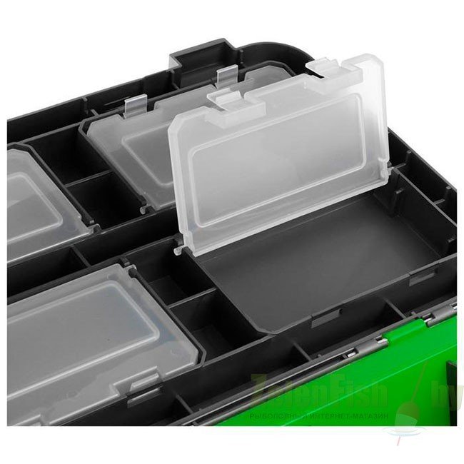 Основной отсек предназначен для переноски рыболовных снастей, термоса, так же удобен для перевозки улова. На внутренней стороне крышки размещены 4 отделения с полупрозрачными крышечками для хранения мелких аксессуаров.