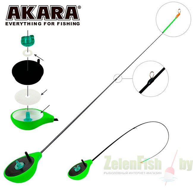 Зимние удочки Akara RBS и SPS, тип балалайка, предназначены для ловли на мормышку. Уникальность этой удочки в том, что ей не нужен кивок. Здесь сигнализатором поклевки является сам хлыст. Выполнен из тончайшего стеклопластика, что позволяет увидеть любую поклевку. Отлично подходит для ловли на безмотыльную оснастку, а так же крупной рыбы.
