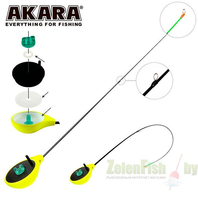 Зимние удочки Akara RBS и SPS, тип балалайка, предназначены для ловли на мормышку. Уникальность этой удочки в том, что ей не нужен кивок. Здесь сигнализатором поклевки является сам хлыст. Выполнен из тончайшего стеклопластика, что позволяет увидеть любую поклевку. Отлично подходит для ловли на безмотыльную оснастку, а так же крупной рыбы.