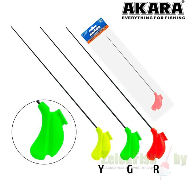 Akara - представляет серию облегченных удильников для ловли на блесну. Удочка выполнена из твердого пенопласта и покрашена в яркие цвета для видимости на снегу. Особенность удочки в том, что она не имеет катушки, леска наматывается на мотовило ручки. При определенном опыте леска подматывается с такой же скоростью, как и на удильник с катушкой.