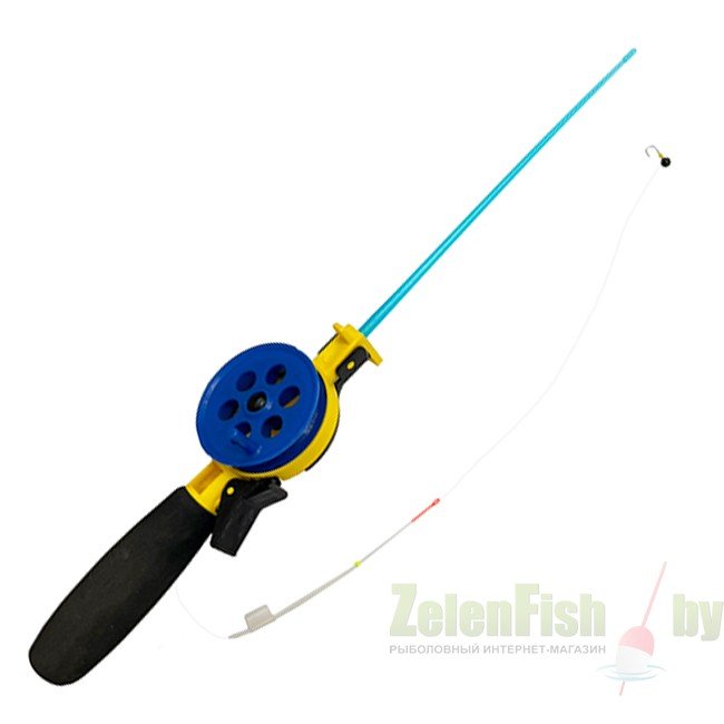 Удочка для зимней рыбалки с катушкой. Во время транспортировки, для удобства, есть возможность отсоединить хлыстик. Удочка подходит для ловли на мормышку во время зимнего периода. Набор для зимней рыбалки: удочка зимняя, лавсановый кивок, литая мормышка, леска 25 метров 0.12 мм.